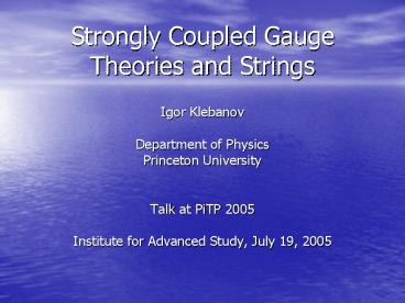 Title: Strongly Coupled Gauge Theories and Strings