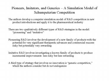 Pioneers, Imitators, and Generics PowerPoint PPT Presentation
