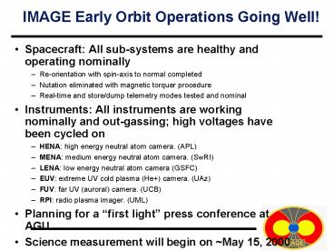 IMAGE Early Orbit Operations Going Well PowerPoint PPT Presentation