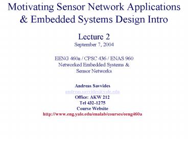 <Notice: Removed> Motivating Sensor Network Applications PowerPoint PPT Presentation