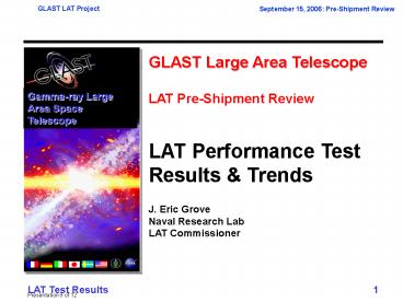 1GLAST Large Area Telescope LAT Pre-Shipment