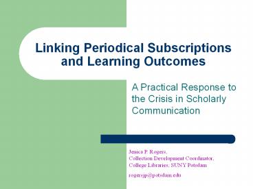 <Notice: Removed> Linking Periodical Subscriptions and Learning Outcomes PowerPoint PPT Presentation