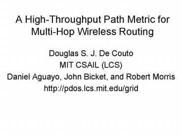 Title: A High-Throughput Path Metric for Multi-Hop Wireless Routing