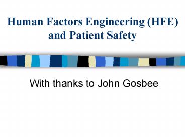 Title: Human Factors Engineering HFE and Patient Safety
