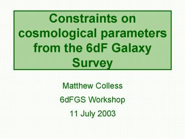 Title: Constraints on cosmological parameters from the 6dF Galaxy Survey