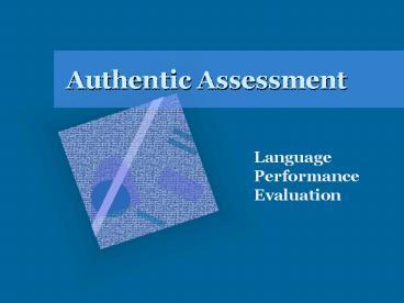 Authentic Assessment PowerPoint PPT Presentation