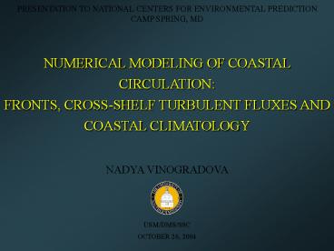 Title: NUMERICAL MODELING OF COASTAL CIRCULATION: