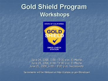 <Notice: Removed> Gold Shield Program Workshops PowerPoint PPT Presentation