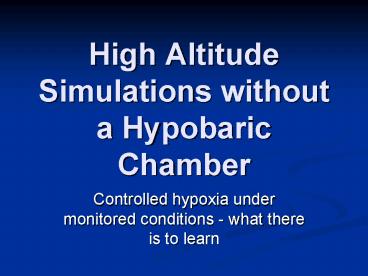 Title: High Altitude Simulations without a Hypobaric Chamber