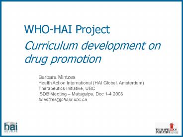 Global, Amsterdam) Therapeutics Initiative, UBC