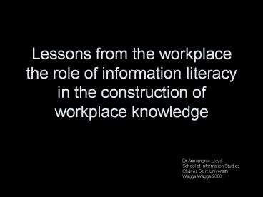<Notice: Removed> Dr Annemaree Lloyd PowerPoint PPT Presentation