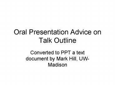 Oral Presentation Advice on Talk Outline PowerPoint PPT Presentation