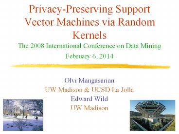 Title: Privacy-Preserving Support Vector Machines via Random Kernels