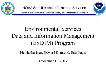 in the 1990's and beyond. - A primary objective of the ESDIM Program is to