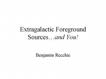 1Extragalactic Foreground Sourcesand You!