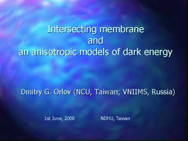 Title: Intersecting membrane and an anisotropic models of dark energy