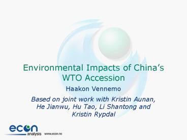 environment (e.g., Copeland and Taylor, 2004) - But not much on environmental impacts of Chinas