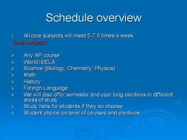 Schedule overview PowerPoint PPT Presentation