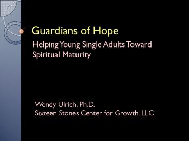 Wendy Ulrich, Ph.D. Sixteen Stones Center for