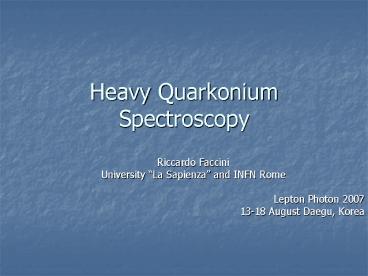 <Notice: Removed> Heavy Quarkonium Spectroscopy PowerPoint PPT Presentation