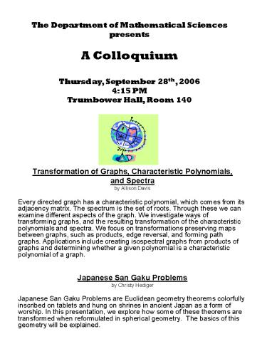 Transformation of Graphs, Characteristic Polynomials, PowerPoint PPT Presentation