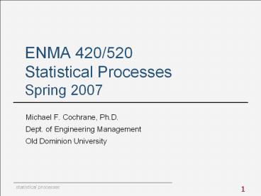 <Notice: Removed> ENMA 420/520 Statistical Processes Spring 2007 PowerPoint PPT Presentation