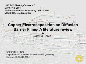 <Notice: Removed> Copper Electrodeposition on Diffusion PowerPoint PPT Presentation