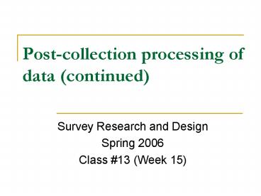 <Notice: Removed> Post-collection processing of data (continued) PowerPoint PPT Presentation