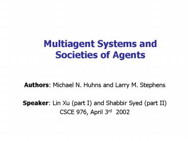 Multiagent Systems and Societies of Agents PowerPoint PPT Presentation