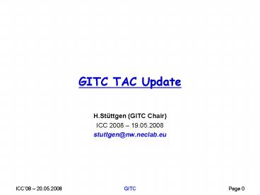 • proposed and presented to TAC (ICC 08, ICC07) for