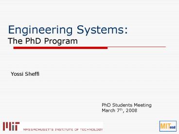 <Notice: Removed> Engineering Systems: The PhD Program PowerPoint PPT Presentation