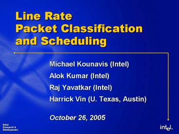 Title: Line Rate Packet Classification and Scheduling