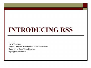 <Notice: Removed> INTRODUCING RSS PowerPoint PPT Presentation