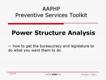- Power Structure Analysis (PSA) is a rapid and