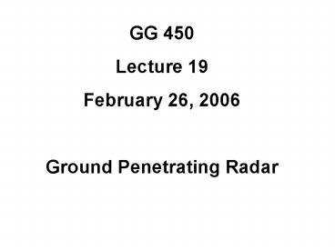 1GG 450 Lecture 19 February 26, 2006 Ground
