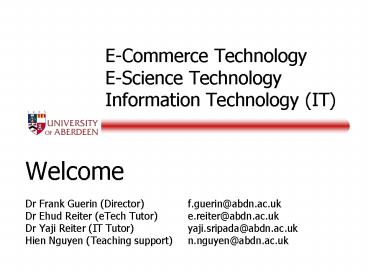 Title: ECommerce Technology EScience Technology Information Technology IT
