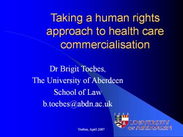 Taking a human rights approach to health care commercialisation PowerPoint PPT Presentation