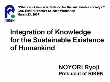society? " CAS-RIKEN Frontier Science