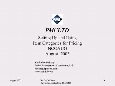 Ltd kdelong_at_pmcltd.com www.pmcltd.com