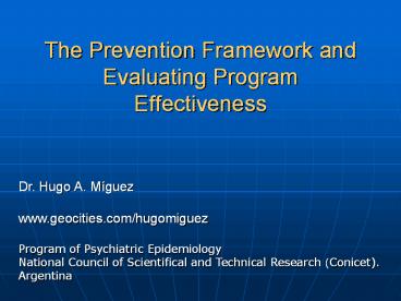 Title: The Prevention Framework and Evaluating Program Effectiveness