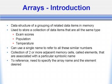 Arrays Introduction PowerPoint PPT Presentation
