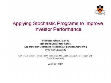 <Notice: Removed> Applying Stochastic Programs to Improve Investor Performance PowerPoint PPT Presentation
