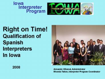 Title: Right on Time Qualification of Spanish Interpreters In Iowa
