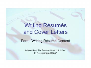 - Part I Writing Résumé Content