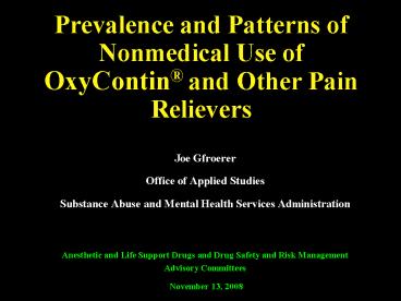 Title: Prevalence and Patterns of Nonmedical Use of OxyContin