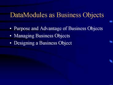 Business Objects. - Makes it easy to manage the issues of Ownership