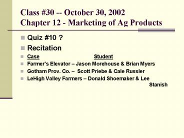 1Class 30 -- October 30, 2002Chapter 12 -