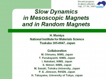 Title: Slow Dynamics in Mesoscopic Magnets and in Random Magnets