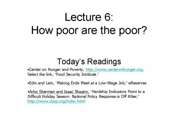 <Notice: Removed> Lecture 6: How poor are the poor? PowerPoint PPT Presentation