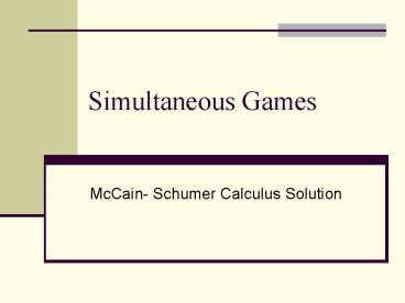 Simultaneous Games PowerPoint PPT Presentation